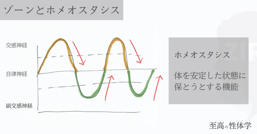 交感神経を優位にして興奮させるところは興奮させるように誘導し、副交感神経を優位にしてリラックスさせるところはリラックスできるように誘導することで