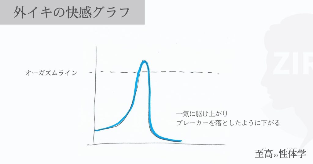 オーガズム(イク)に至るところまで刺激が蓄積されると、一気に快感の波が高くなり、ブレーカーを落としたように下がって行くのが特徴です。